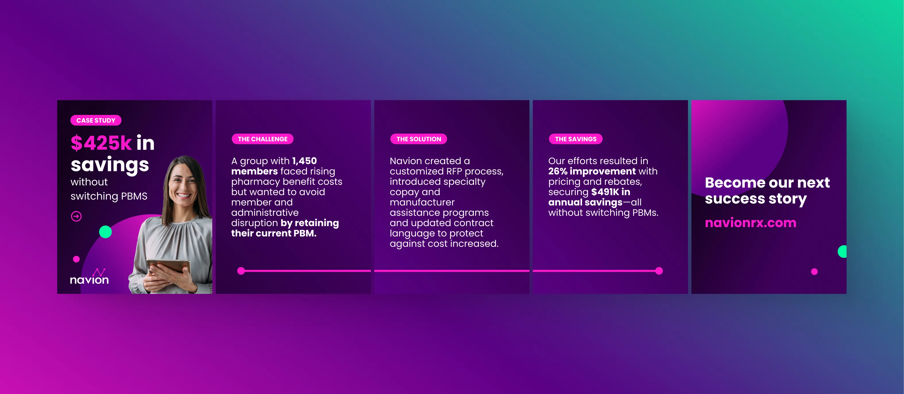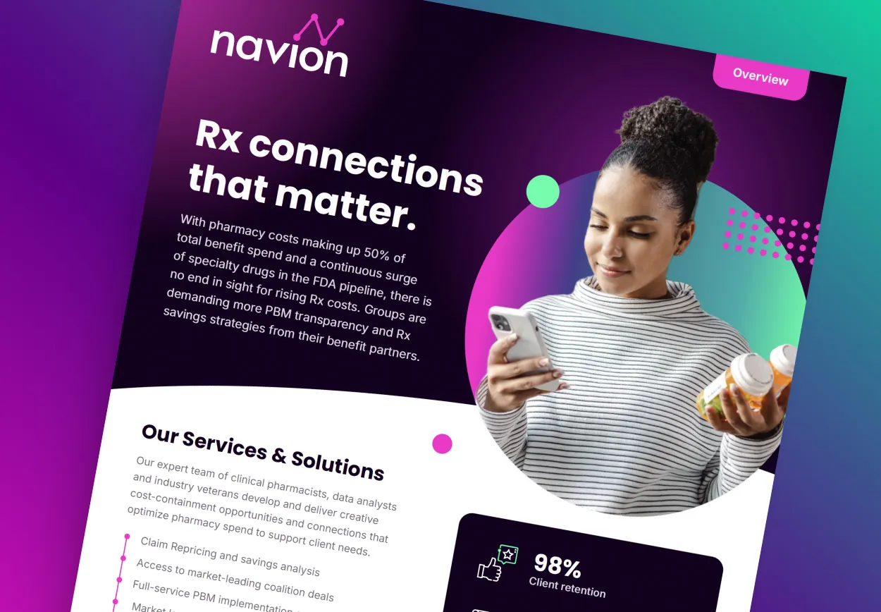 As the pharmacy market grew more complex and crowded, Navion needed a brand that reflected its evolution—from niche consultant to national thought leader. Their story had to cut through industry noise, convey deep expertise, and give brokers and TPAs a reason to choose Navion first.