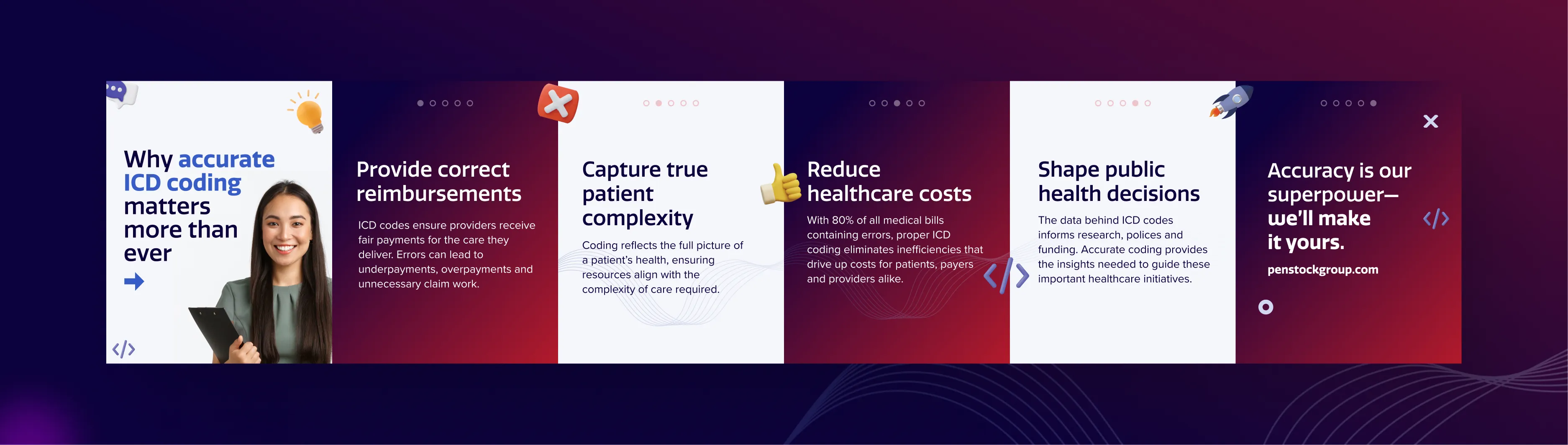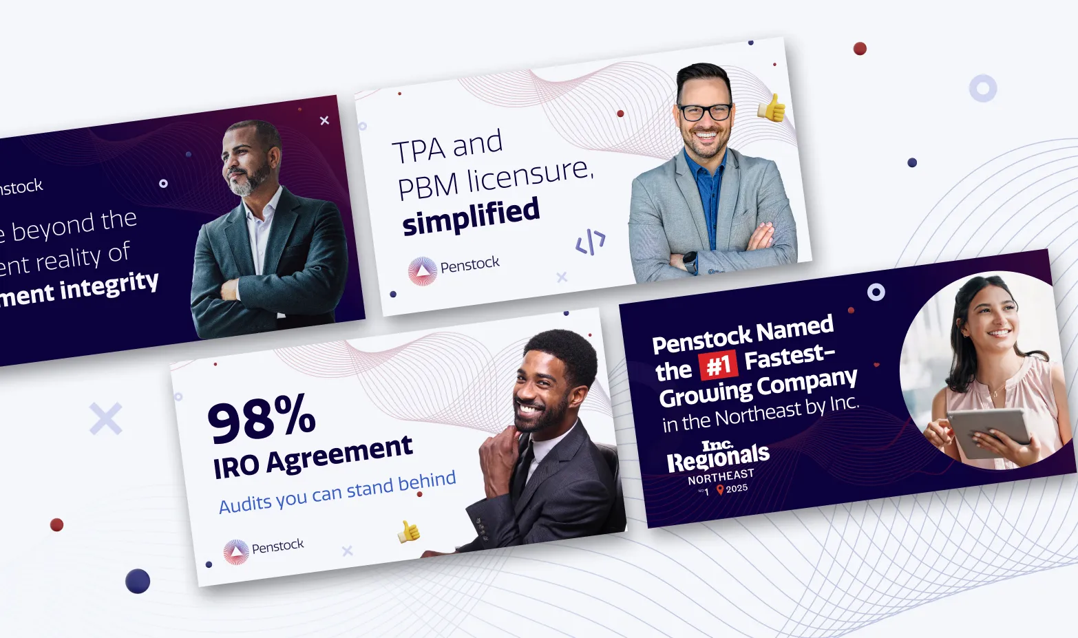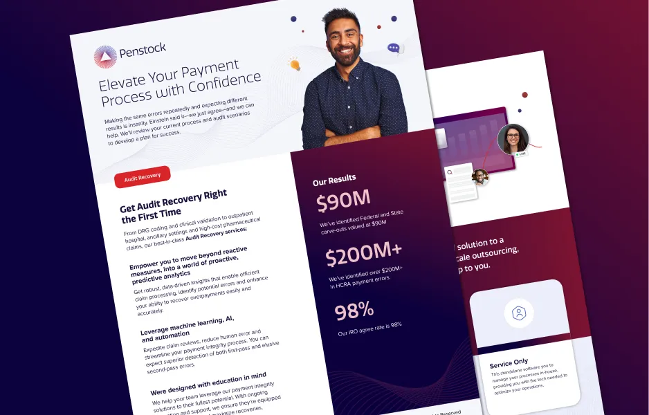 Penstock came to us at a turning point. Competing in a crowded payment integrity space dominated by legacy players, they needed more than a new look—they needed a brand that could match their mission: restoring integrity and accountability to healthcare payments. We became their full-service marketing partner, helping transform Penstock from a promising disruptor into one of the fastest-growing companies in healthcare.